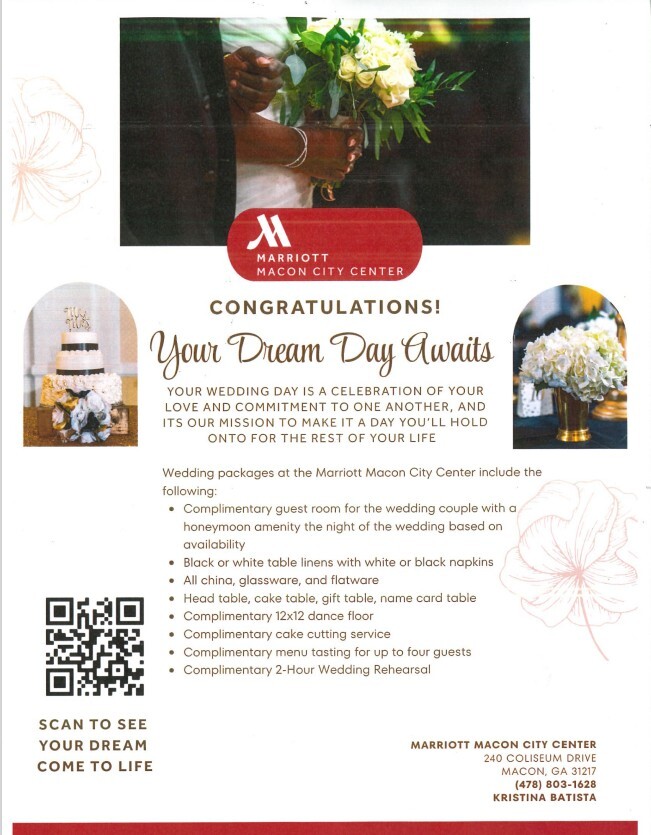Elevate your Georgia travel experience when you stay at Macon Marriott City Center. Located in the heart of Macon, we are the city's only 4-Diamond full-service hotel. Connected to the Edgar H. Wilson Convention Center in Macon Centreplex, our hotel boasts a convenient location near top destinations such as Coliseum Health Systems, downtown Macon and Mercer University. Just 14 miles away from the Middle Georgia Regional Airport, you'll enjoy hassle-free travels when you come in and go out of town. Retreat to upscale hotel rooms featuring luxury bedding, ergonomic workspaces and flat-screen TVs. Maintain your workout routine while traveling by exercising at our fitness center featuring free weights, weight machines and cardiovascular equipment, and take a refreshing swim in our heated indoor pool. If you'll be hosting a business or social function, reserve one of our flexible event venues offering a full catering and an events team. A rewarding stay awaits at Macon Marriott City Center.