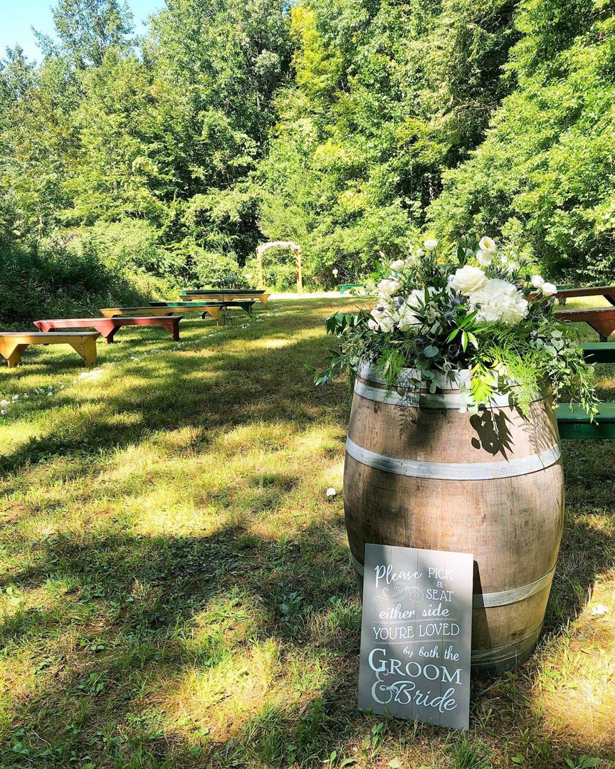 Imagine exchanging your vows beside the camp’s sparkling lake, creating an idyllic waterside backdrop for your first kiss as spouses. Take advantage of the camp’s lovely scenery for woodsy wedding photos, creating a singularly whimsical setting for your wedding album. To celebrate this wonderful moment, dance the night away in the Laurelwood Retreat Center. This rustically styled structure is perfect for holding a reception. The towering, exposed beamed ceilings create a sense of grandiosity in the space without foregoing that camp-like atmosphere!