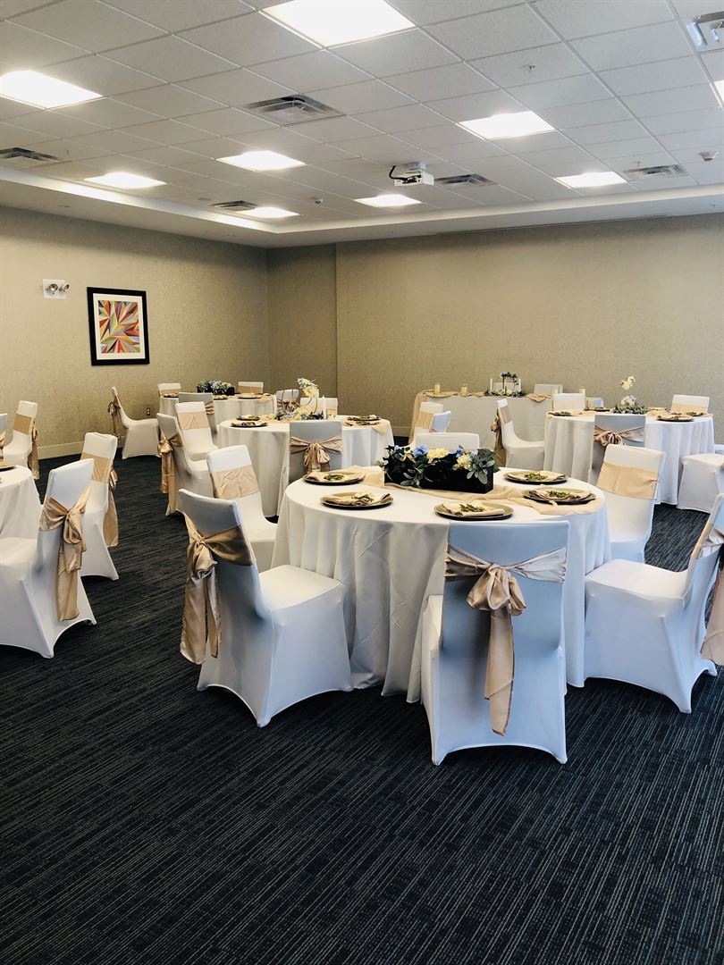 We proudly offer a 1200 sq ft meeting room that can accommodate up to 90 people. We offer catering service and liquor service for any event you may have in mind. To find availability and pricing information for your meeting or event, please request a meeting quote or book your event online.