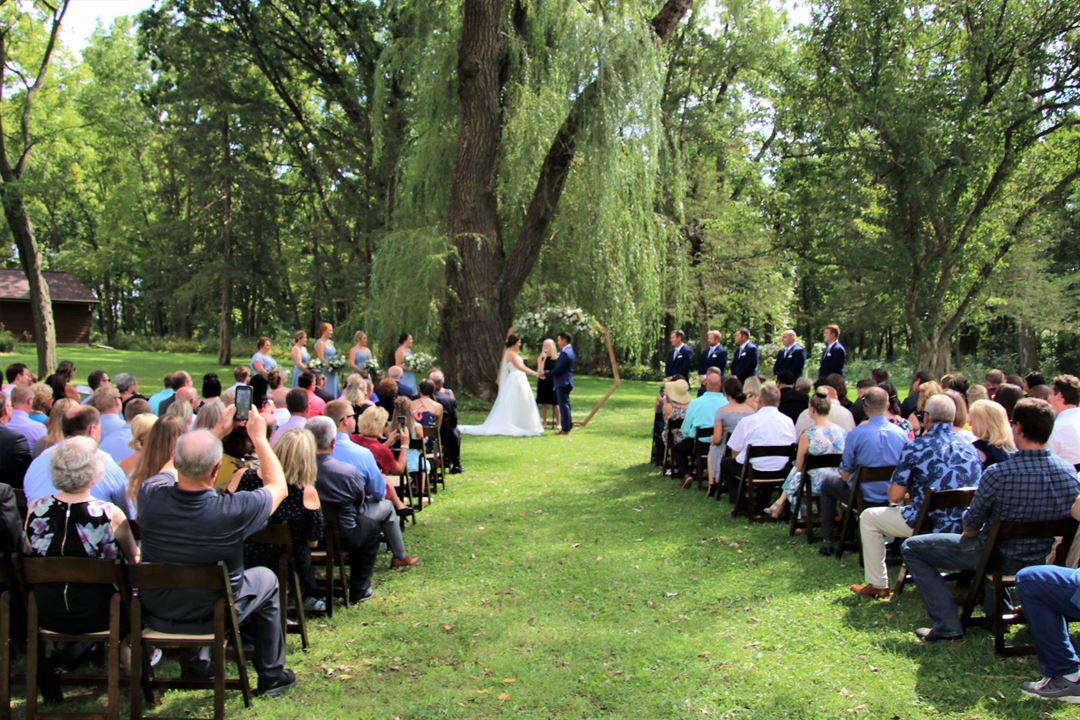 Our unique property also includes an onsite farmhouse that sleeps up to 14 guests. This makes it the perfect option if you want the bridal party, family members or corporate staff to stay at the same location. The farmhouse has 4 bedrooms, 3 baths, full kitchen, living room, screened in porch, a separate sleeping area and a 3 season porch. If you are renting the farmhouse and still need more lodging, we have 2 RV spots in the parking lot for rent (only available if renting the farmhouse).