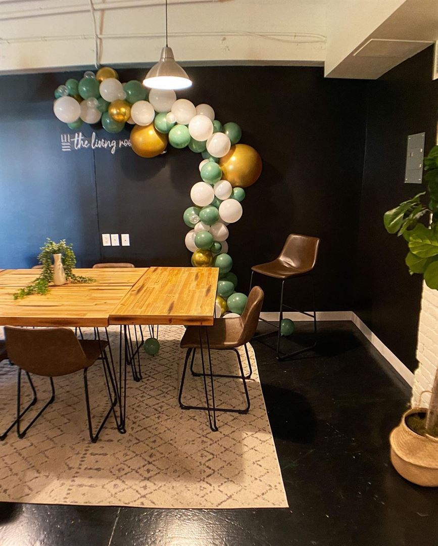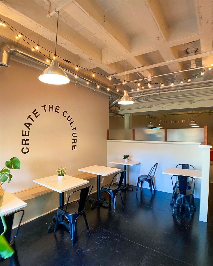 The Living Room is a community space open for private meetings, private events or classes. The space is flexible and can be used for a variety of events. It holds a kitchenette, small cafe area, large open space with living room furniture that can be easily moved to accommodate larger gatherings.
