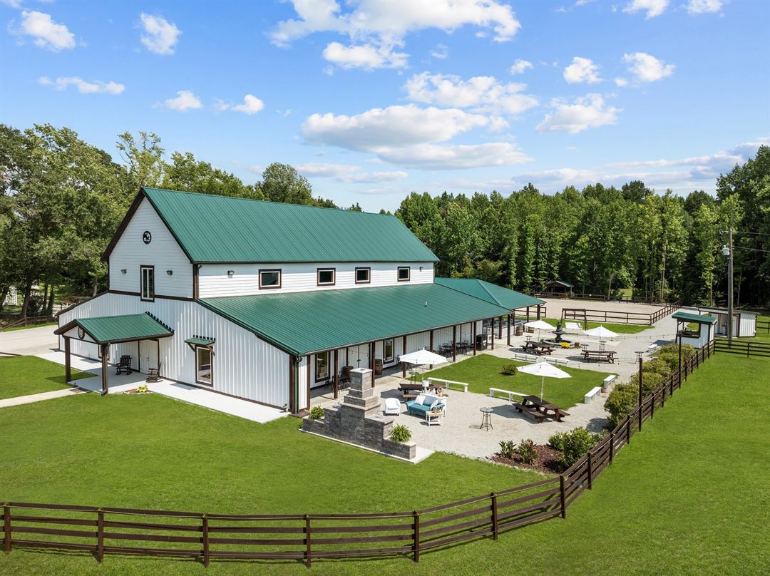 The English Country Barn is built on 300+ acres, of beautiful woodland trails and lush pastures, this brand new, custom designed, country chic barn offers the perfect year round wedding venue.
