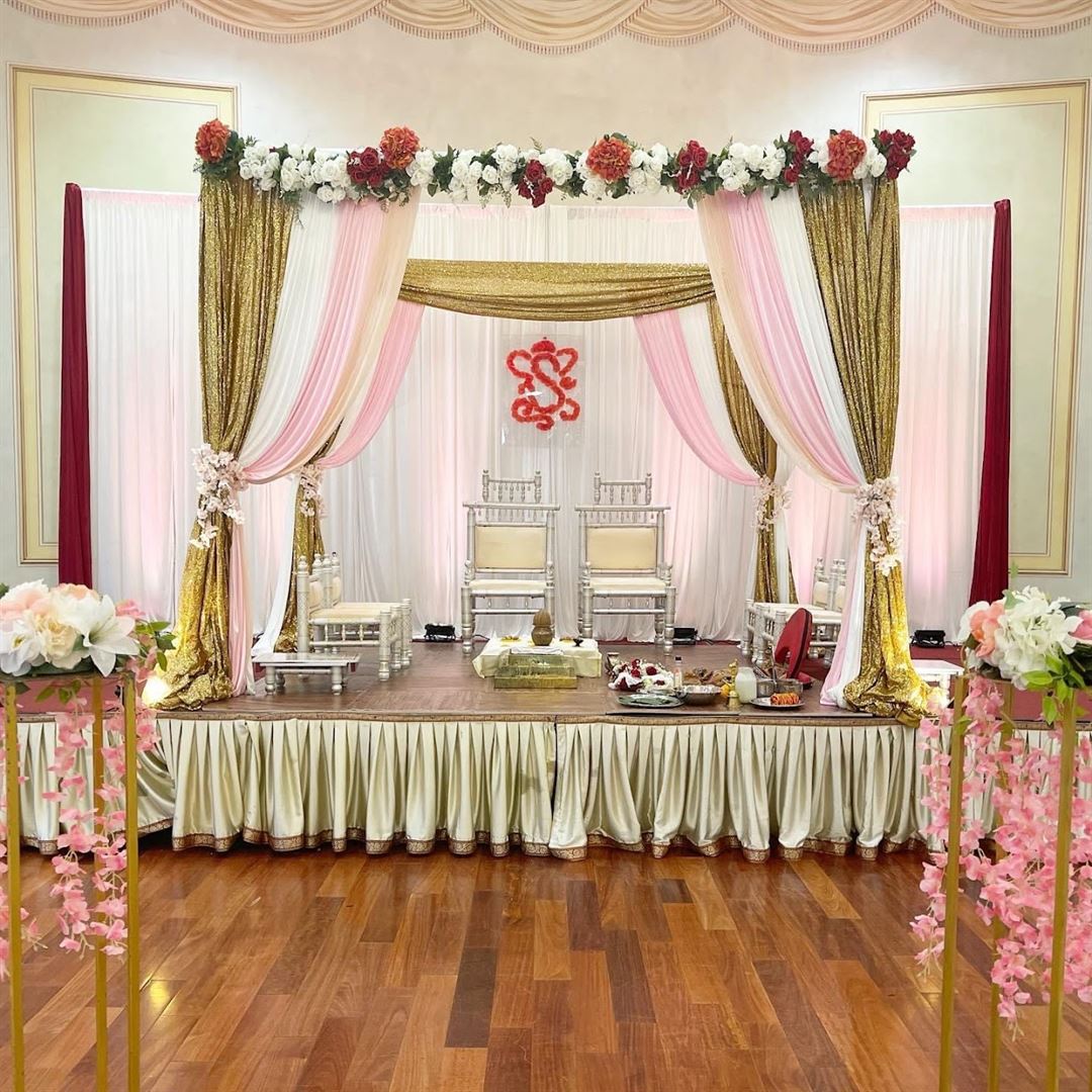 For Indian Weddings: Inside Main Temple (20 people ONLY ), Mandap , Bride & Groom Chair, and Priest Services provided for a cost.