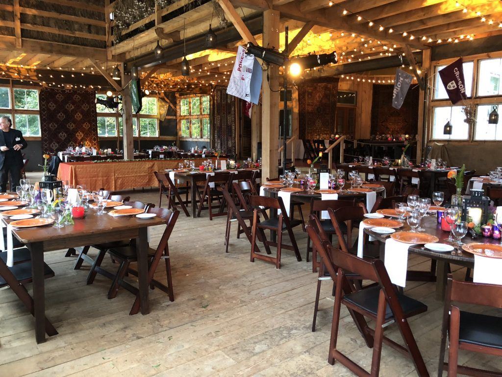 Our 200 year old event barn accommodates up to 175 guests. The barn is is adjacent to our ceremony lawn and is surrounded by fields, pasture, rolling hills, and Mount Equinox. You are welcome to use the barn for your wedding reception, a festive rehearsal dinner, a brunch, or all of the above. Groups are welcome to use our hidden upper field for tented events. You are welcome to supplement our event inventory from other vendors.