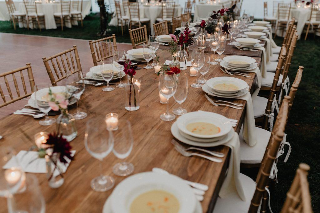 Included with event rental is the 6-bedroom Farmhouse, the 2-bedroom Cottage, and usage of the event barn for the duration of your stay. Additionally, we provide wooden farm tables and chairs for guest usage, as well as basic service ware including mason jars and silverware, for up to 100 guests.