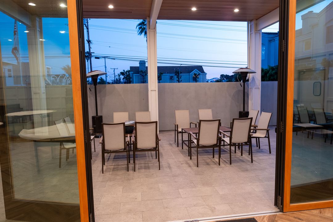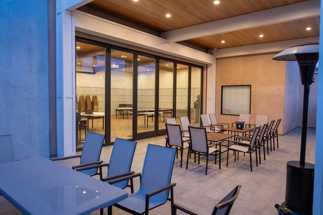 Our facility features three ADA-compliant restrooms, with one equipped with a baby changing station. An enclosed patio, complete with heaters for cooler seasons, provides a cozy and inviting space ideal for smoking cigars and hookahs.