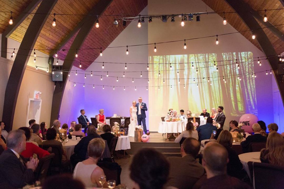 Our venue’s modern-minimalist design combined with the rustic-historic ambiance of a 100+ year-old building creates a visual experience that will “WOW” your guests even before they see your dress! We also have upgraded lighting, projection, and sound systems included to ensure your ceremony (and/or reception) has the exact look and feel you desire.