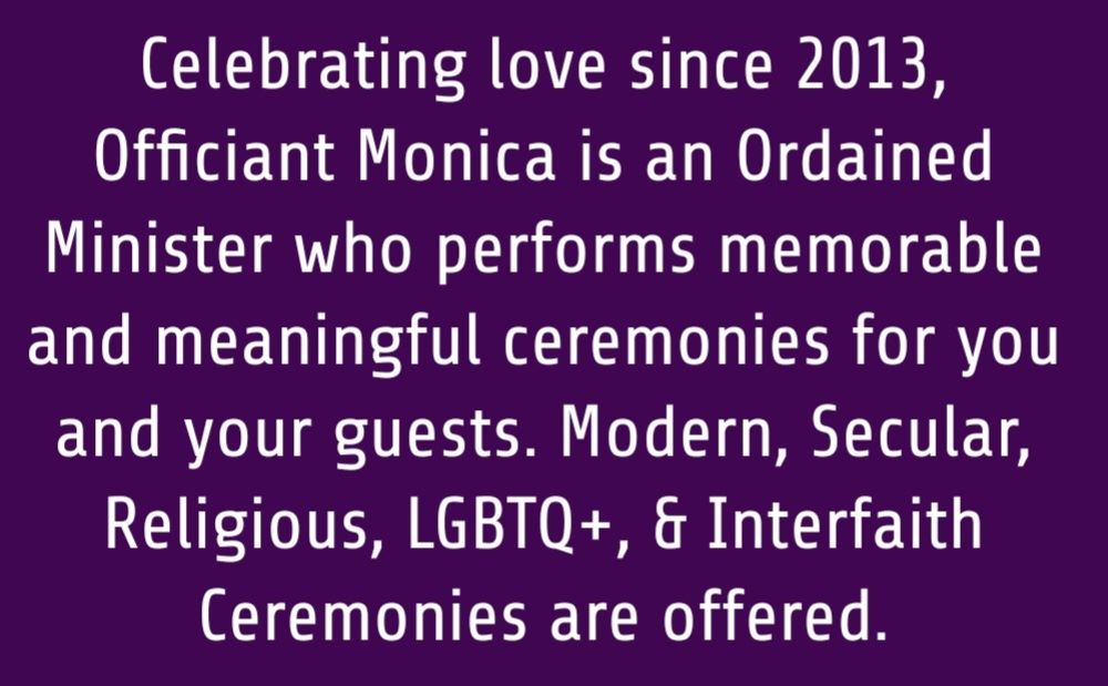 I am an ordained Minister and traveling Officiant based in Marion, Illinois. I specialize in Weddings, but I officiate other ceremonies by request such as funeral services and other celebrations. I serve parts of Kentucky, Indiana, Tennessee, Illinois, and Missouri. Yes! I travel to your location public or private, Indoor or outdoor. Why do I do it? Because I love it! Premarital Counseling is not required. Premarital mentoring is offered. Consultations are always FREE!