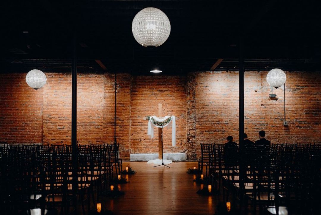 Creating a beautiful backdrop for memories and dynamic photo opportunities, the Brickyard brings together an urban industrial vibe with timeless historic architecture dating back to the 1830s! Limestone and brick walls, exposed beam ceilings, natural light, hardwood and concrete floors, beautiful chandeliers in the main ballroom open up through a glass garage door into a private, open air courtyard featuring pavers, turf, and a fire feature.