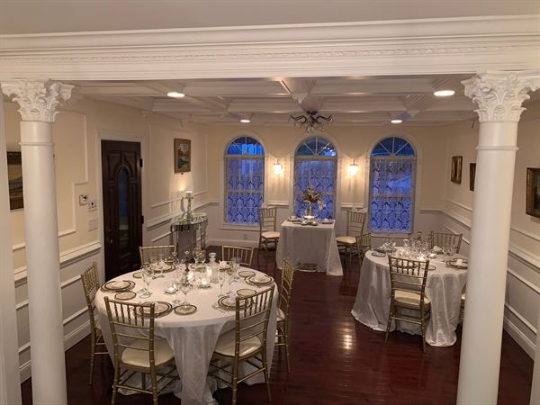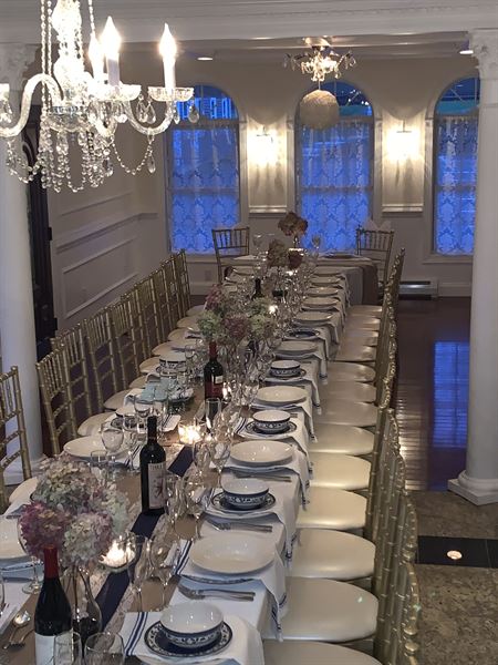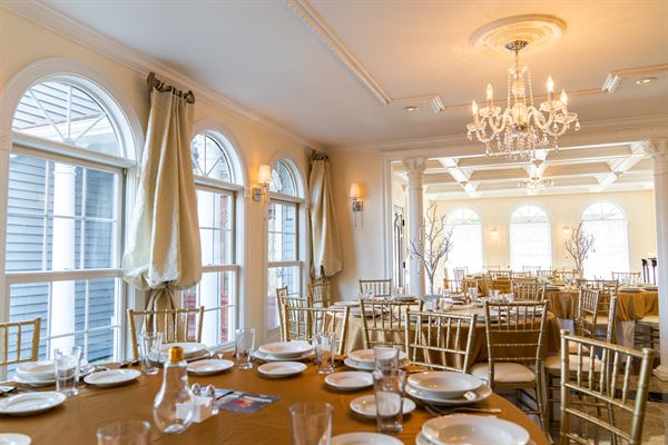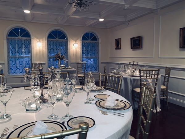 With polished granite floors, Waterford crystal chandeliers, and coffered ceilings- the Meadowbrook Estate Grand Dining Room can host any elegant event