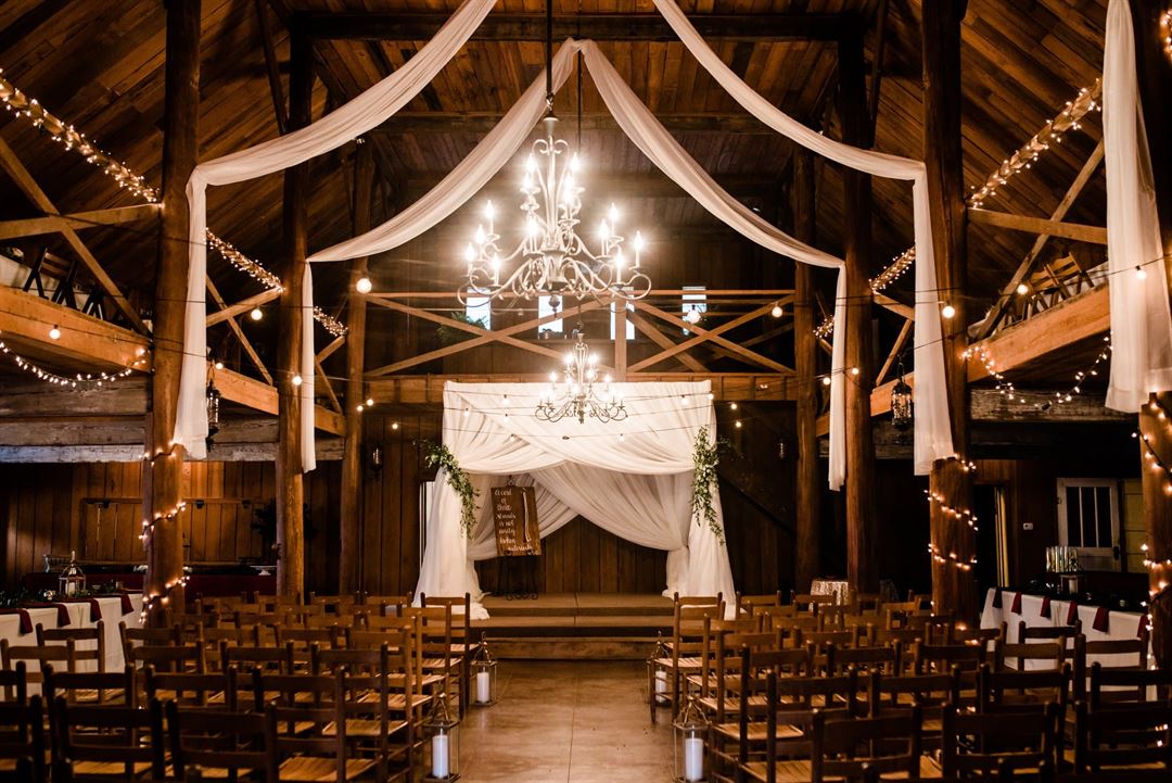 The barn features a 15ft wet bar and includes 28 6ft tables, 175 chairs, bathrooms, commercial kitchen, parking accessibility, heat/AC, a bridal dressing room and a 300 person capacity.