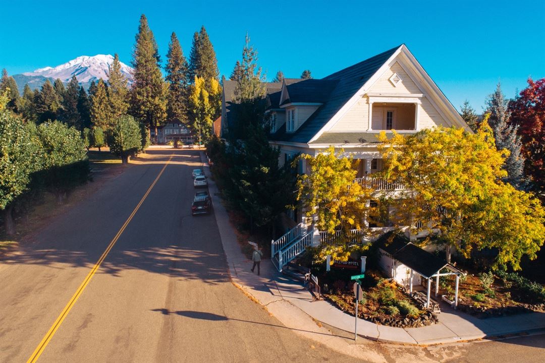 With venue space to accommodate 20 to 250, the McCloud Hotel operates three historic indoor/outdoor wedding venues in McCloud, making it the perfect choice for large and small gatherings. Full-property buy-outs are available for those looking to host larger groups. The hotel’s patio and garden space boast two seasonal fire pits, a pergola-covered terrace, and garden nooks. Our estate property, with park-like lawns among stately oaks and pines, provides spectacular Mount Shasta views.