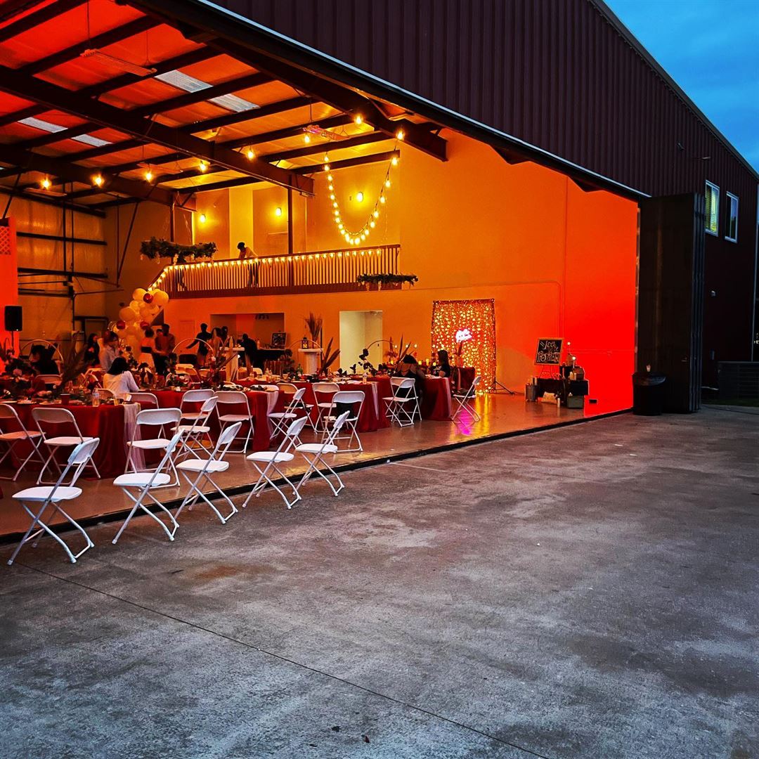 We had our daughter's wedding reception in the hangar. It was simply elegant and exactly as the bride wished for! The truly incredible part was we could host ALL our out-of-town family and friends in the gorgeous adjacent homes, and had everything we needed to feed them dinner there after the rehearsal as well as everyone able to get ready for the wedding in luxury and privacy. Even the wedding photographer had ample space and vistas for photographing the wedding party from the outset. This was a truly unique experience in every way.