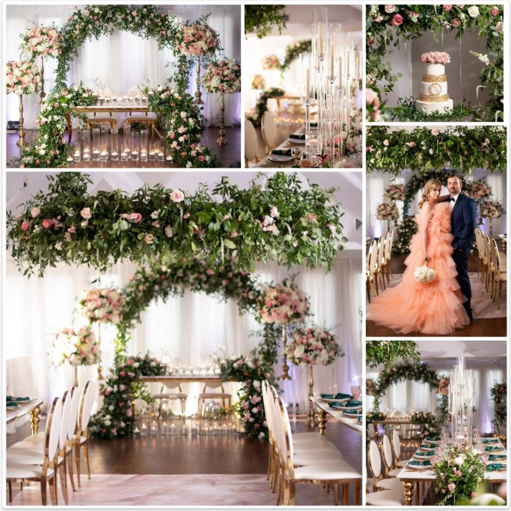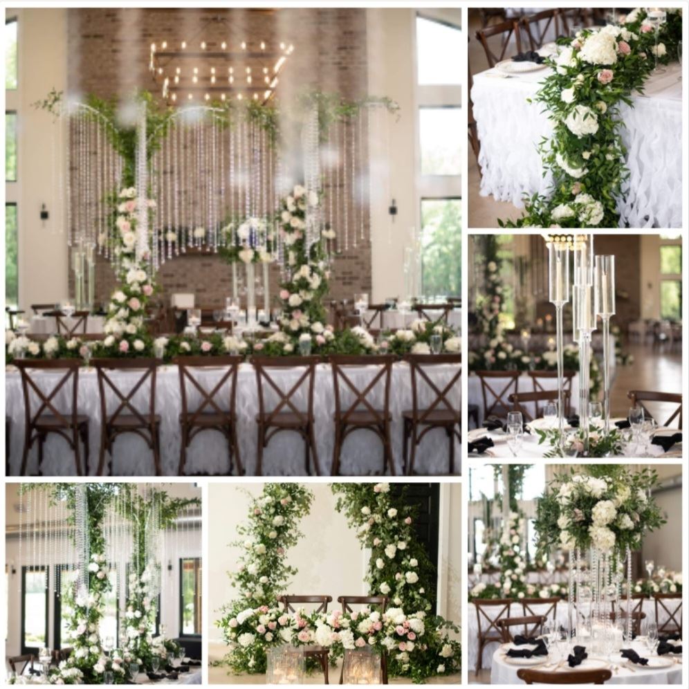 One stop shop! I can provide fresh or faux florals, floral stands, linen, up lights, custom dance floor wrap, wall or ceiling draping, chandeliers, vases, candles, charger plates, dinner napkins, luxury furniture, cake swing, champagne walls, and so much more!