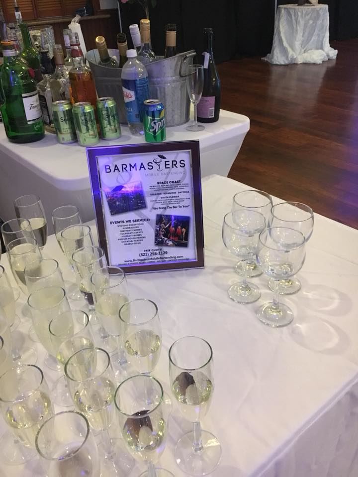 BARMASTERS Mobile Bartending is your premier mobile bartending service in the Orlando, Melbourne, Mims, Daytona, Space Coast, Vero Beach & Palm Beach area! We offer friendly bartenders for any event, including Weddings, Engagements, Fundraisers, Birthdays, Corporate Events, Holiday Parties, Office Parties and Cocktail Parties. Book us today to serve Beer, Wine, Liquor and Soda with a smile on our face to your guests! We provide all of the essentials for a worry-free professional bar experience for your wedding or event guests.