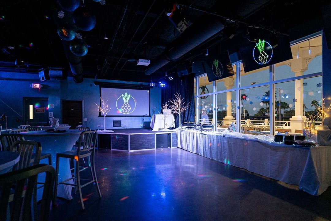 Celebrate your next event at Pineapples! The Moon Room provides some the finest audio and lighting equipment Earth can offer for the most professional of performers. Ten televisions and a projector screen for viewing human recreational activities. 2,500+ square feet for live music, art shows, company luncheons, etc. Expect a modern look inspired by the galactic endeavors that the Space Coast is famous for.