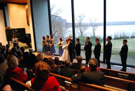 The Church of the River is an ideal and affordable location for Memphis weddings, for non-members as well as members! We have a beautiful sanctuary (designed by famed architect Roy Harrover) with floor-to-ceiling windows offering a breathtaking view of the mighty Mississippi River.