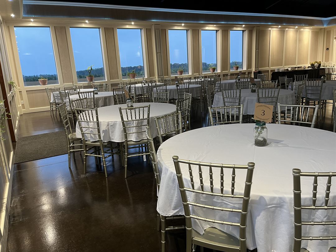 The hall is decorated in a Scottish Manor theme with photogenic views in every direction. The facility can be set to host both ceremony and reception or brides may choose to exchange vows outdoors and retreat to the comfort of the hall for reception.
