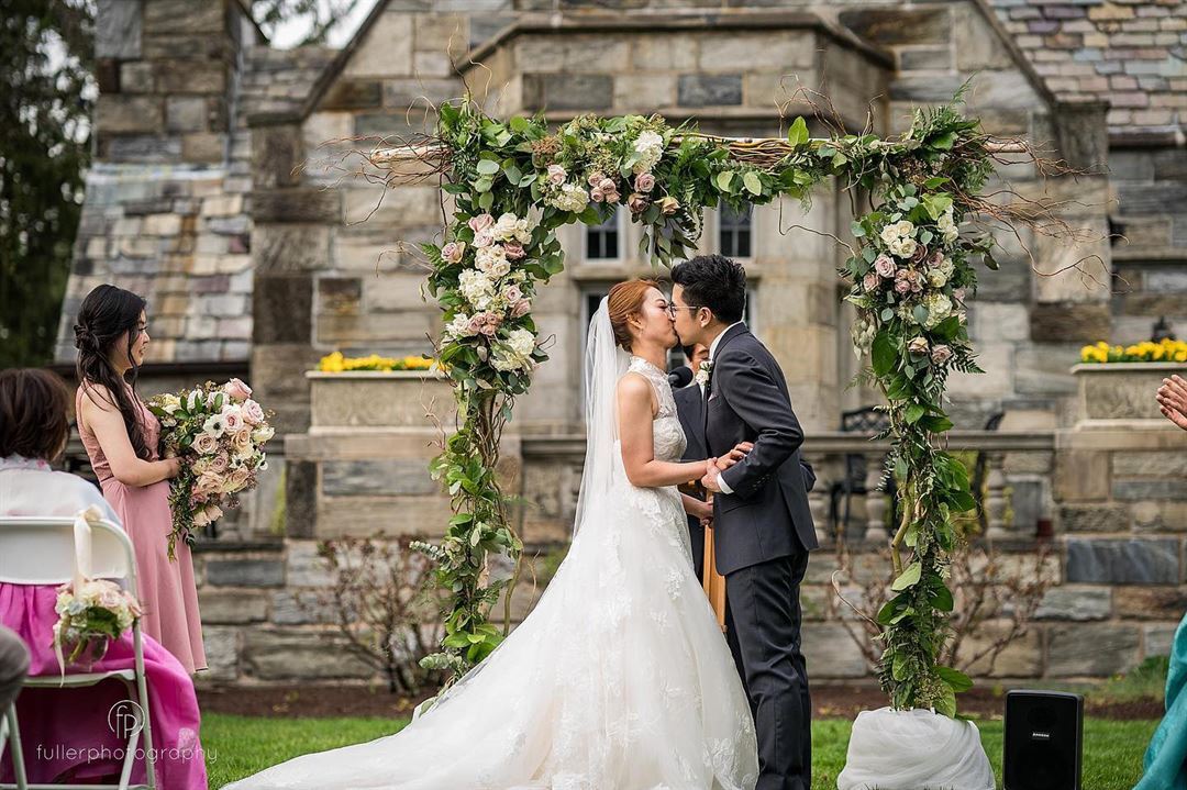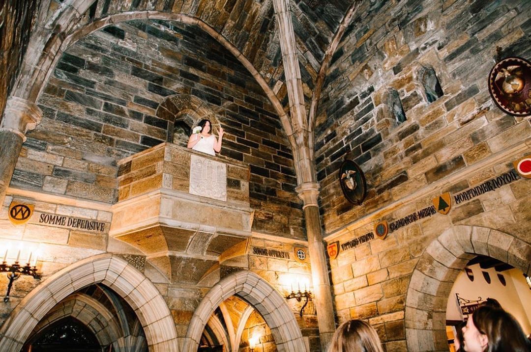 The rooms have cathedral and carved wood ceilings and there is many stained glass windows, letting the beautiful colors sore into the ceremony.