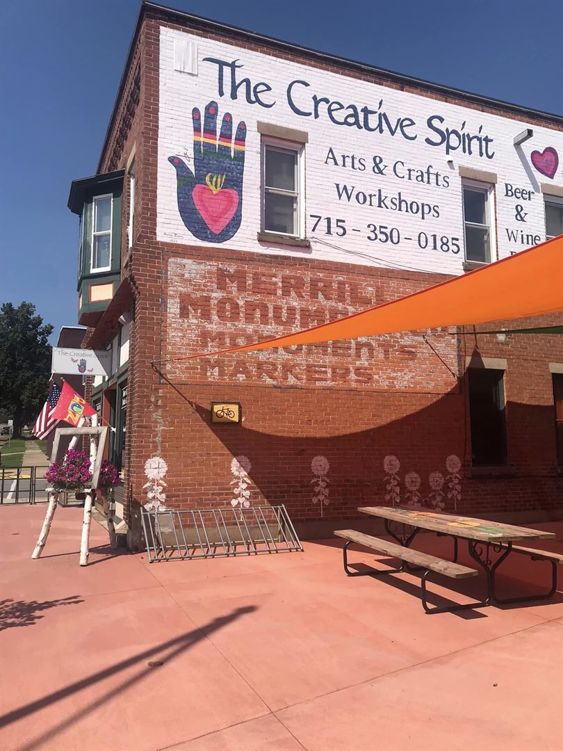 Beautiful historic building in Merrill Wisconsin available for intimate gatherings. Outdoor patio with sun sails and tables. Beer, wine, and champagne too!