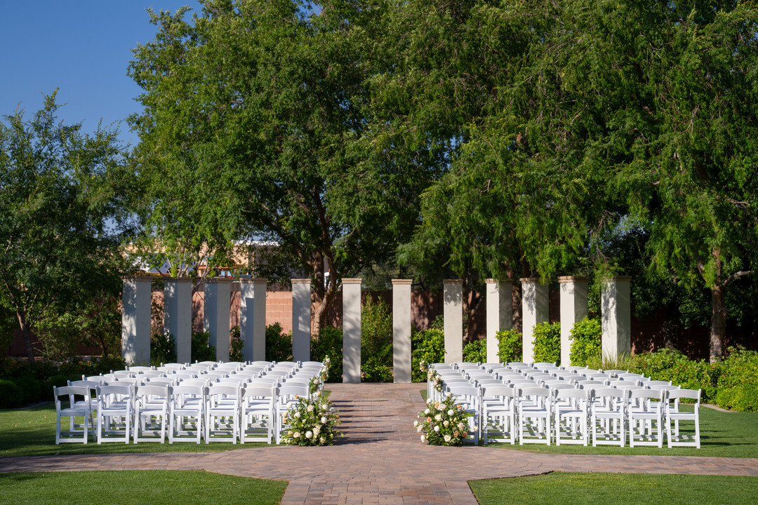 Outdoor enthusiasts will be delighted by the multiple ceremony sites, immaculate gardens, and lush greenery that adorn the property, creating a lush oasis in the heart of the Arizona desert. The meticulously maintained grounds provide countless unique photo opportunities, from the sparkling pool and multiple fountains to the romantic spiral staircase and thousands of twinkling lights illuminating the estate at night.