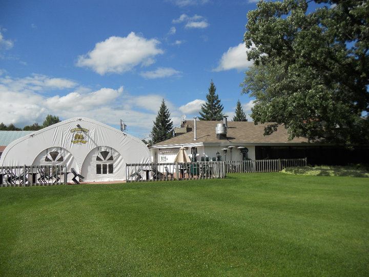Interlock deck covered by our banquet tent, which overlooks the first tee of our nine-hole course