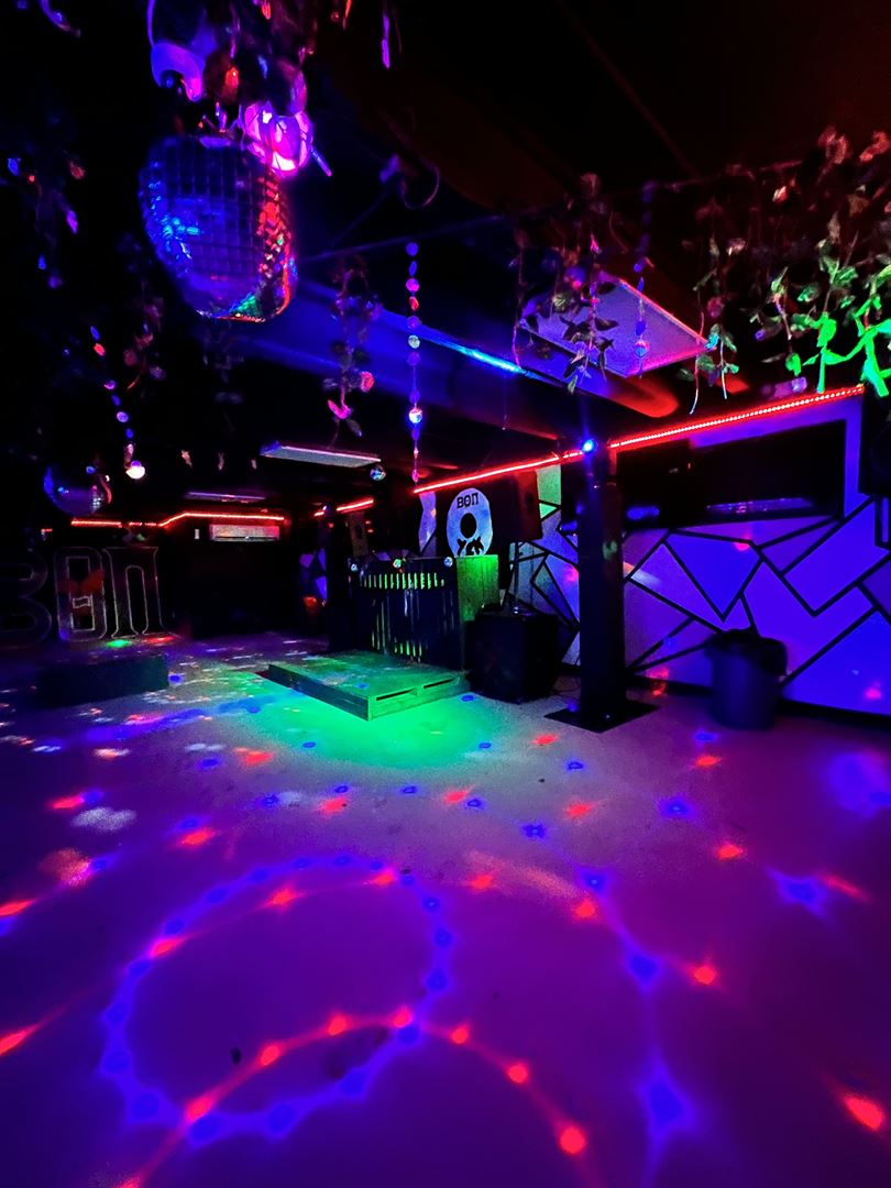 Small stage with huge bar. Also VIP rooms! Professional speakers and Lights included.