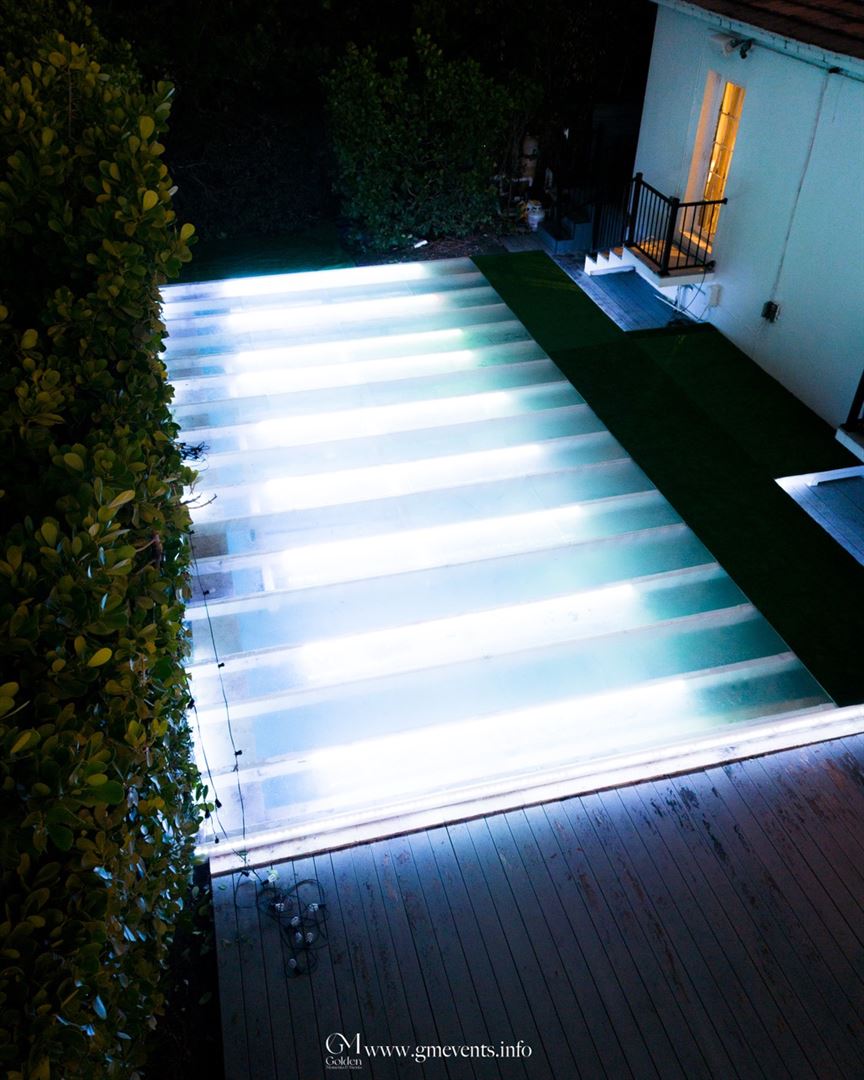 • Special Features: Say goodbye to venue terms, time restrictions, and location deposits. Our Pool Cover Dance Floors bring you the opportunity to convert your pool area into the venue of your dreams. Say hello to an unforgettable celebration!