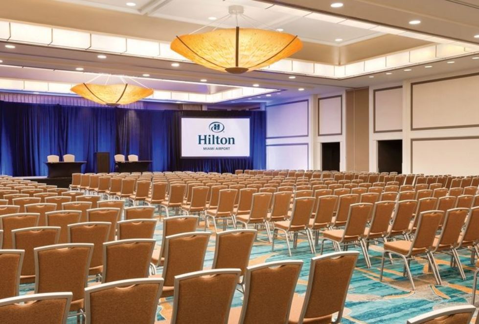 With more than 30,000 sq. ft. of versatile Miami meeting space and professional services, the Hilton Miami Airport hotel makes arranging an event easier than ever. Take advantage of the Mezzanine Level for lunches and breaks, and enjoy the ease of having WiFi and on-site specialists at the helm for all A/V needs. Two large boardrooms and 16 airy meeting rooms, each with individual lighting and temperature controls, offer a variety of options to accommodate small gatherings to grand social functions.