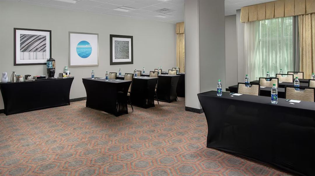 We can hold meetings for up to 35 guests and receptions for up to 50 guests. Natural lighting, free Wi-Fi, on-site A/V, built in counter top, set ups and breakdowns included and we offer catering services as well as welcome you to bring in your own!