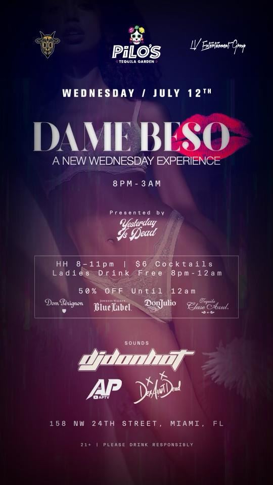 Fleet of DJs and Promoters to make any venue pop! Baccano Sunday Brunch 1pm-5pm Dame Beso Wednesday @ Pilos Tequila Garden