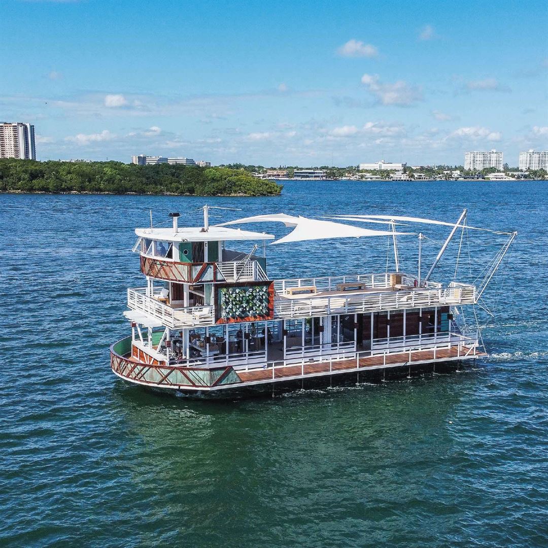 The Vessel is a majestic island-style ship that effortlessly combines classic art deco charm with modern luxuries. It can accommodate up to 150 guests, making it ideal for corporate events, private parties, and picturesque sunset cruises. This spectacular vessel is equipped with two fully-stocked bars, a professional DJ booth, and separate restroom facilities for male and female guests, ensuring a smooth and unforgettable experience for everyone.