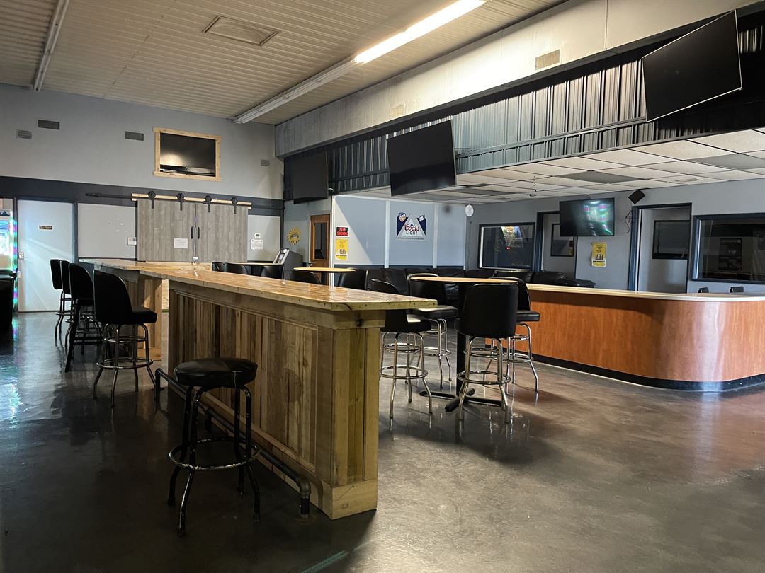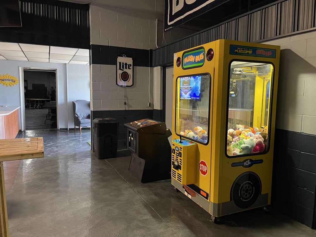There is Golden Tee, Claw Machine, kid claw machine, and 2-70" big screen TV 's. in the Party room area. The Bar has 4 Big screen Tv's and is separated by a door from the BAR to PARTY ROOM, basketball hoop, picnic tables, gaming area with sectional sofa, corn hole, pool, darts, and plenty of space for the kids to run and play.