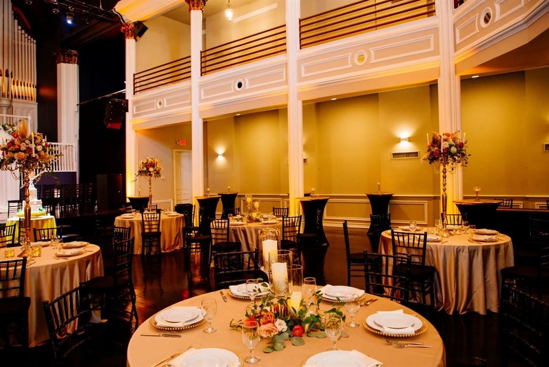 Uptown Social, featuring a beautifully restored 1867 ballroom, is the perfect venue for both the wedding ceremony and reception of your dreams! Uptown Social not only features the ballroom and balcony, which can seat up to 250 guests with ample space for a dance floor and head table, but also has a full-service bars, private courtyard, covered patio, 2 bridal suites and a groom's suite to make your dream day exquisite!