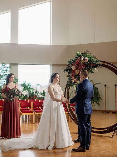 Holy Wisdom Monastery provides a beautiful environment inside and out for wedding ceremonies and receptions throughout the year. Our facilities are modern, bright and spacious and our grounds provide a variety of natural settings perfect for a memorable day! Our staff offers Benedictine hospitality to all looking for a place for their wedding. Both members of our worshiping community and non-members alike are welcome to hold their wedding at the monastery.