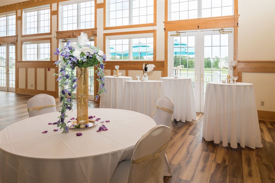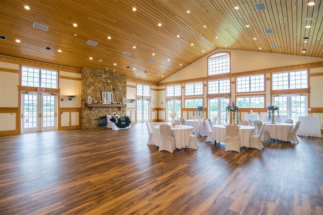 Wall-to-wall wood floors, a stone fireplace and wrap-around veranda overlooking the golf course are just a few of the unique features that will add character to your special event. We can accommodate up to 120 seated guests.