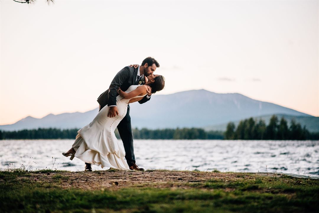 Weddings happen on the point and guests enjoy a reception outdoors overlooking the lake and the mountain. The sky changes throughout the day and the sunrises and sunsets can be stunning depending on the day.