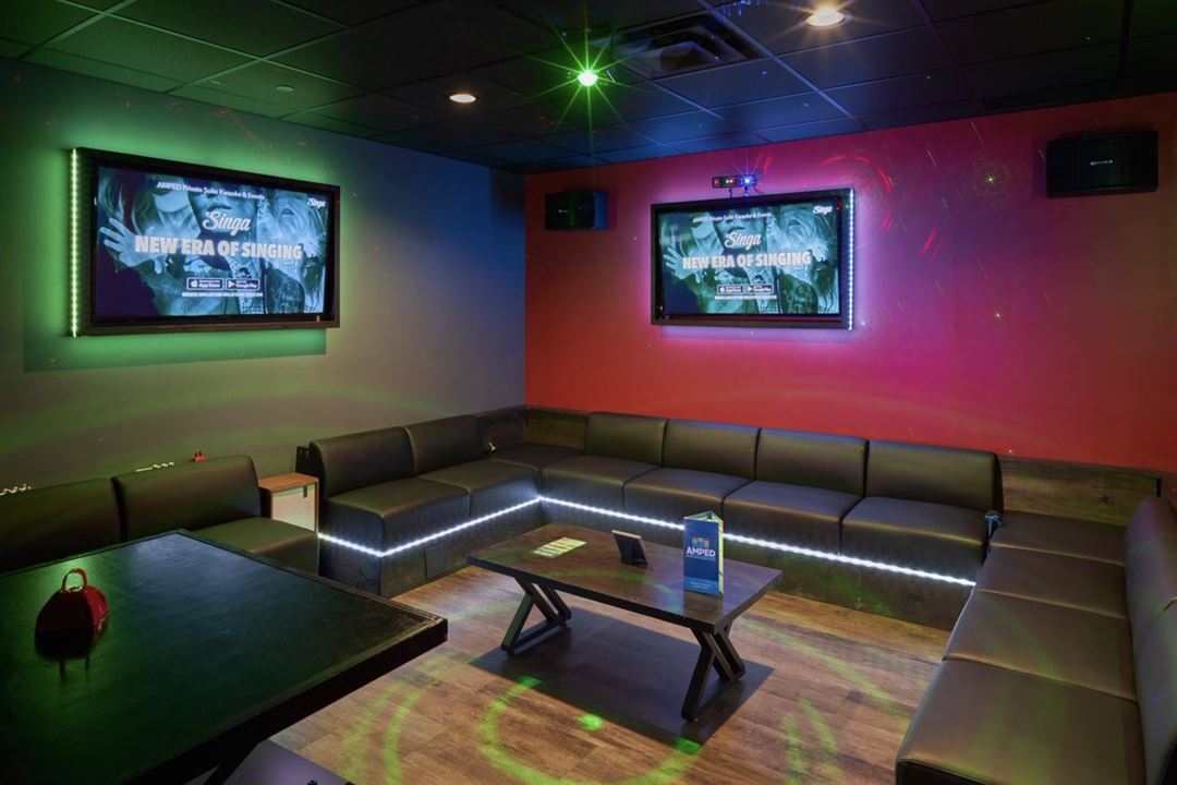 Amped, a creative meeting venue and karaoke bar, features eight standard karaoke suites, two premier karaoke suites, two dedicated meeting ?& event spaces, plus a full bar and three lounges. Amp Up your next Birthday Party, Holiday Party, Bachelor/ette Party, Rehearsal Dinner, Sports Watch Party, ?or any other gathering at Amped. We have games, team building, catering, drinks and, of course, karaoke.