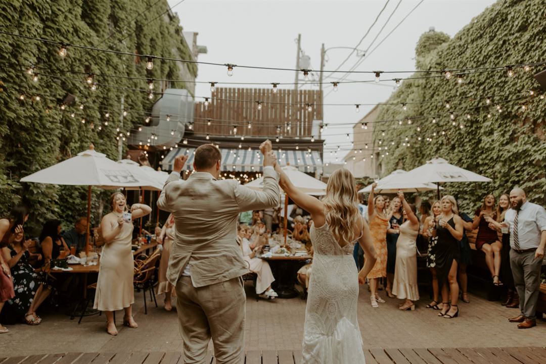 We are SO happy with our decision to book Centraal Grand Cafe & Tappery for our venue space. We initially wanted to elope but decided on a budget friendly smaller wedding (~95 people). We had been to Centraal for dinner and brunch when we lived in Bayview but never knew they could be used as a wedding venue. In our research, I saw a blog post from Married in Milwaukee, where a couple mentioned Centraal was their venue. When we reached out, we learned that there was no venue fee- just a food and drink minimum. After looking at other photos of weddings held in their Gallery/Courtyard Patio - we knew it was the right fit. We also worked with Molly very closely from the Lowlands Event Planning Group who was so great to work with and so flexible. She really brought our vision to life. The space was great for us- The brick wall and ivy are so beautiful that we didn't even need much decor to dress it up. All of the tables were modular so we were really able to use the space in a way that made sense for our guests. The deck doubles as a dance floor and it was just the right size for our group. If we had less than 60 people, we could have flipped the space but we had Oscar seating for the quick ceremony and reception which worked out perfectly. Most of the space was outdoor- which was a risk but we ended up with the best weather ever (65-70 F). The space felt so warm and intimate which was exactly the vibe we were going for. Our guests raved about it and for any Chicago folks, guests were comparing it to the cobblestone courtyard in front of Trivoli Tavern/Green street. We are so glad we picked Centraal for our venue <3
