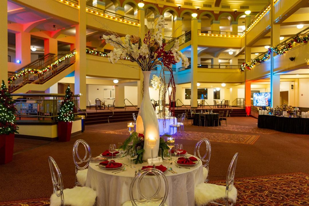 A signature feature of the Miller High Life Theatre is its half-domed rotunda lobby ringed by three levels of gallery walkways, created from the rear of the original hall's arched ceiling; a mirrored wall creates the illusion of an enormous, circular rotunda. This space is used for general patron circulation, concessions and merchandising as well as pre-show receptions and assembly breaks.