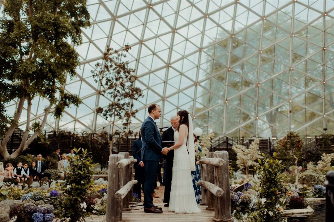 The three horticultural domes at Mitchell Park Conservatory offer diverse and distinct spaces for corporate events and weddings hosted in Milwaukee. The domes are filled with lush floral elements, striking succulent landscapes and winding paths all enclosed by a soaring glass terrarium ceiling. The stunning backdrops compliment any event held here that is sure to entertain and amaze guests.