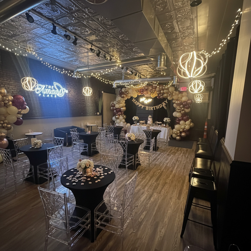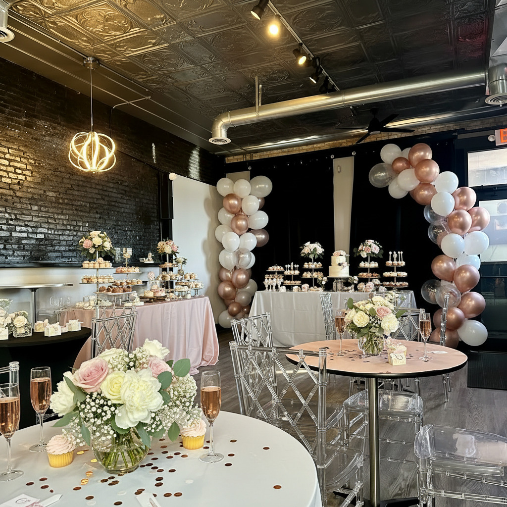 Welcome to our boutique-styled venue, where intimate gatherings take center stage. With a capacity of up to 50 people, our space combines modern comfort with a touch of industrial chic and 1,200 square feet of versatile, beautifully designed space. The high ceilings and exposed HVAC lend an urban, yet cozy atmosphere.