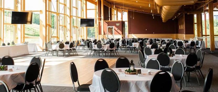 The Chalet has two indoor venues, the Alpine Room and the Ridgeview Room, with soaring ceilings, expansive windows and stunning views, as well as an outdoor site for hilltop ceremonies. Please visit our website to explore our venue, and contact us with any questions!