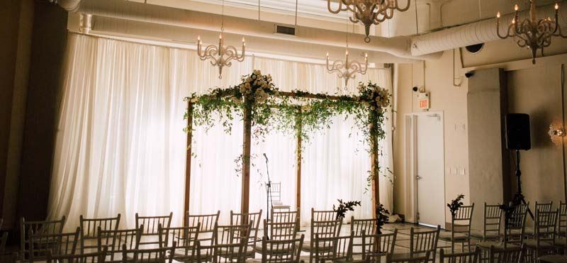 Guests enter Loring Social through the Waverly room, named after a historical New York City hotel That's still in operation. The elegance of this venue creates an ambience perfect for ceremonies, award dinners or dancing. It also provides a striking ten-foot, white marble bar that serves as an adjacent cocktail lounge. In dramatic contrast to the gleaming marble of the Waverly Room, the larger second room is inspiringly romantic with raw elements of urban chic. 16 chandeliers sparkle from the vaulted ceiling, while exposed brick walls frame a working, glass garage door that leads to a quaint European-style back alley.