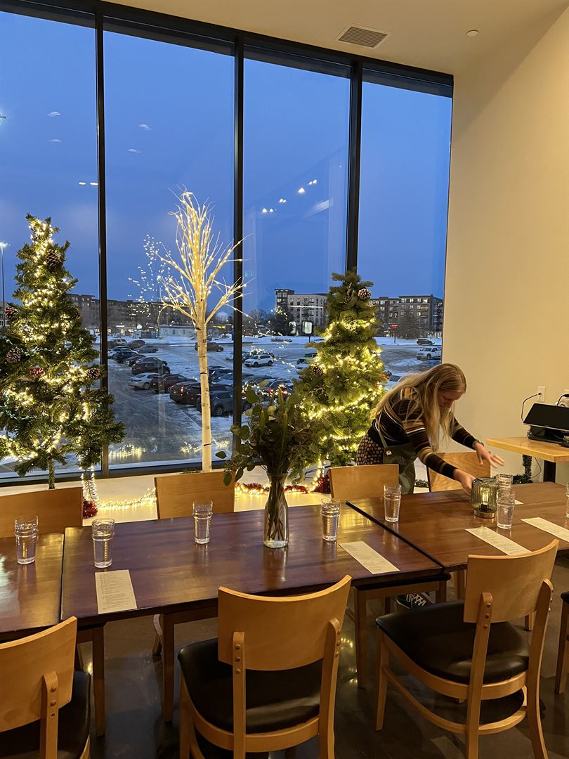 We have a lovely airy new space perfect for entertaining with groups ranging up to 88 people. We have a talented professional staff who cater to groups with all sorts of dietary restrictions. We can easily help guide you to a menu for your group and have a full liquor, wine and beer license. We also have our own coffee and delicious local teas. We can accommodate groups for weddings, graduations, birthdays, work meetings and everything in between.