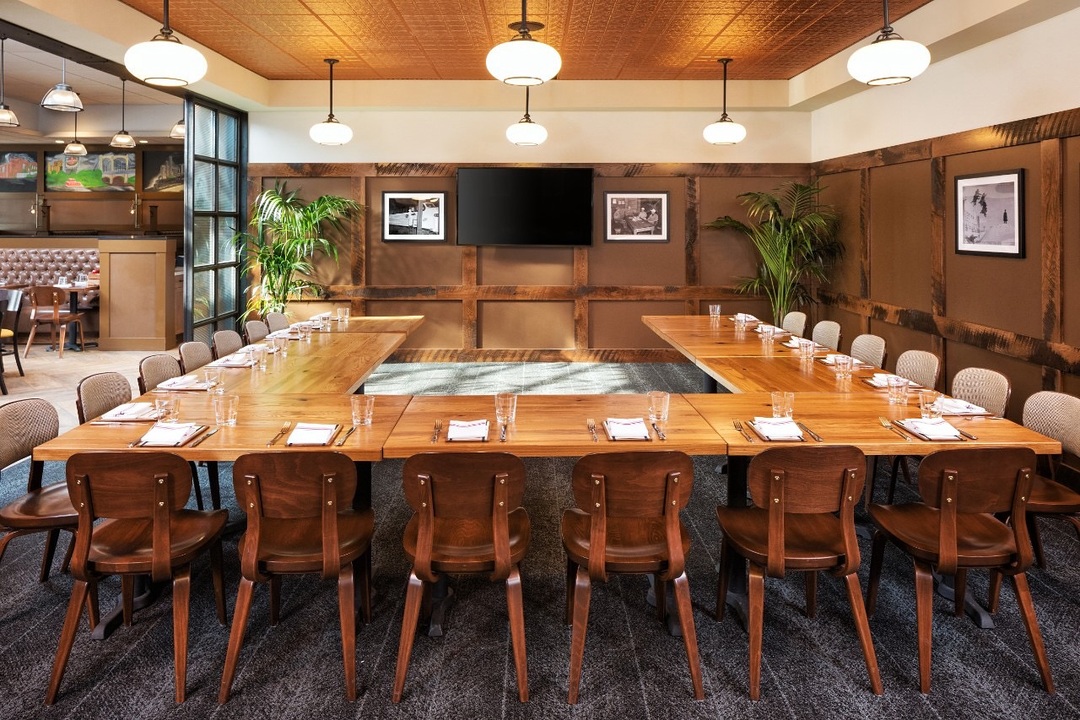This private, wood-paneled space is perfect for business and celebratory gatherings. The Pullman Room offers seating for up to 52 guests and a capacity of up to 60 for cocktail-style events.