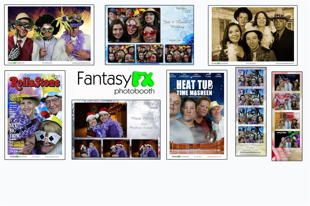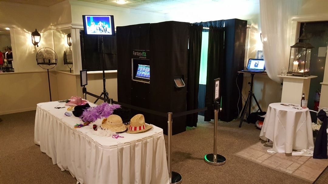 Wedding entertainment featuring DJ's, FantasyFX green screen photo booth, Dance lighting, Up-Lighting, online wedding planner and music request database, online photobooth gallery. Photo booth lets your guests choose from over 450 backgrounds and 4 print layouts! 2 touchscreens means less waiting... average 2 minutes per session! Booth holds up to 8 people per session. Visit our website and click the 'Packages' tab for an Instant Quote.