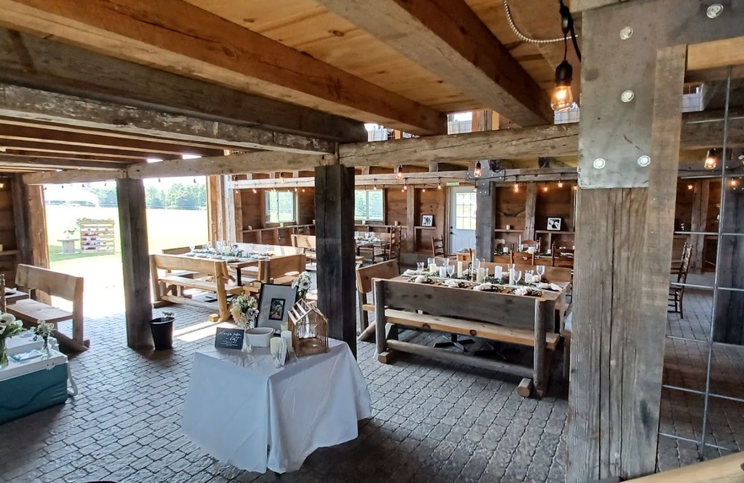 Welcome to Hemond Farms, where rustic charm meets modern elegance in the heart of nature. Nestled on sprawling acres of lush farmland, Hemond Farms is your premier destination for unforgettable weddings and events. A true farm to table wedding experience on our beautiful sprawling 600 acre property. Our newly constructed Post & Beam barn with cobblestone floor and seating for up to 120 guests is the ideal setting for your dream wedding. Our grounds can accommodate thousands of guests with camping available! In-house farm catering. Indoor / Outdoor ceremony options. Please email for pricing. At Hemond Farms, we offer a stunning post-and-beam wedding and event venue that comfortably accommodates up to 120 guests. Our picturesque setting, complemented by breathtaking views and an inviting atmosphere, makes it the perfect backdrop for your special day. We provide comprehensive catering services featuring our farm-fresh ingredients, ensuring a farm-to-table dining experience that delights and satisfies.