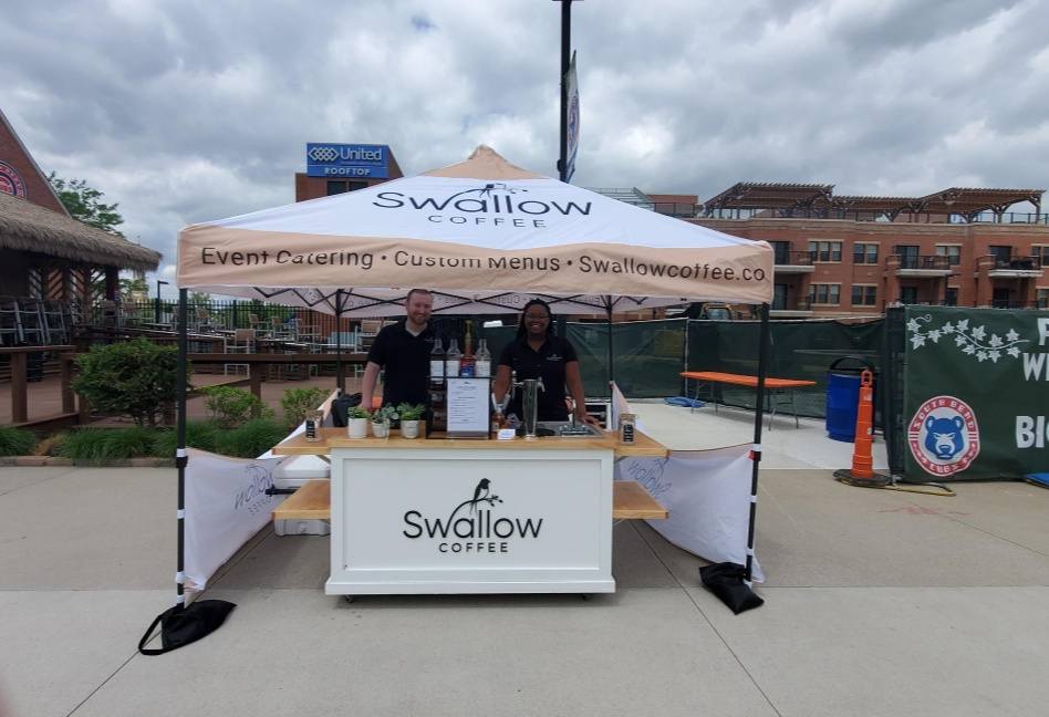 I had the pleasure of having Swallow Coffee Company host my event, and it was truly exceptional. The baristas were impeccably uniformed, professional, and incredibly friendly. The coffee cart itself was stunning, with a sleek white design featuring the company logo and a beautiful wood top. I customized my drink, and it was crafted to perfection. I highly recommend Swallow Coffee Company for any event or gathering - their service and quality are truly outstanding.
