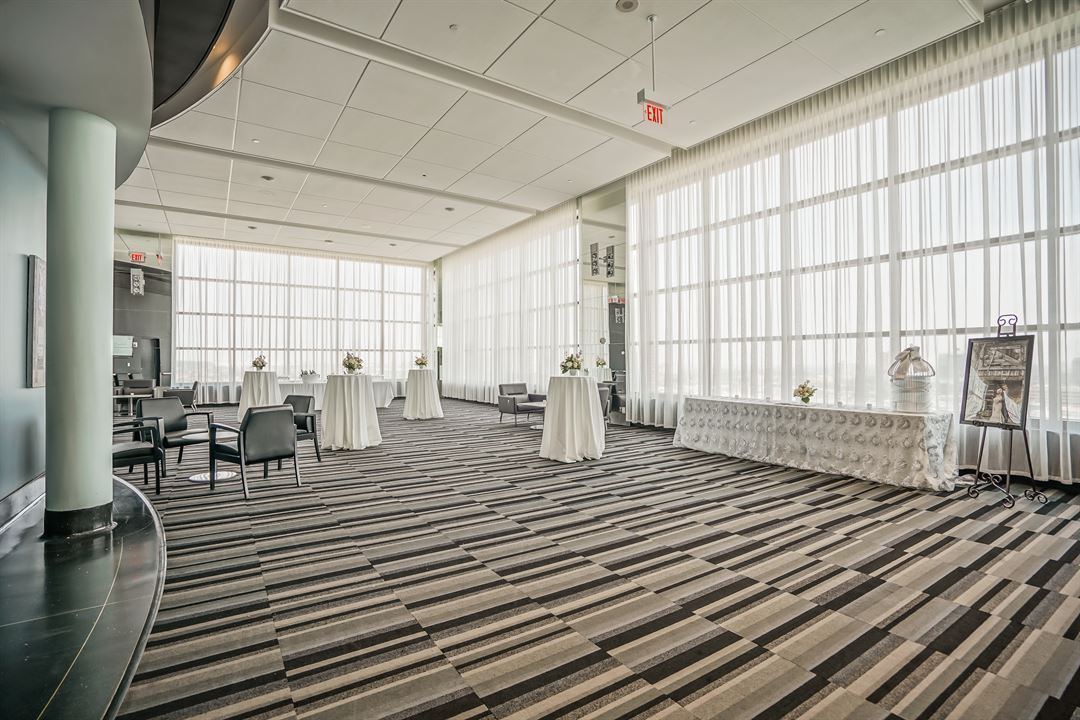 This modern event venue is located 12 stories high, hence an elegant reception with a heightened experience is part of what C Banquets has to offer. With a reception-style format, this space is able to accommodate up to 200 guests. Our maximum seated capacity is 160 seated guests, however, depending on format, our Event Coordinator can suggest best layout options for your event.